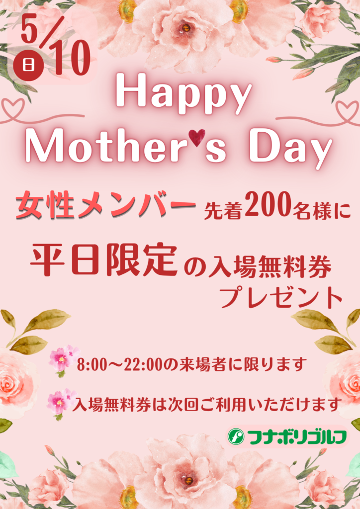 5月10日(日)朝8時以降にご入場の女性のICカードメンバーの方、先着200名様に翌日からご利用いただける平日限定入場無料券をプレゼントいたします。